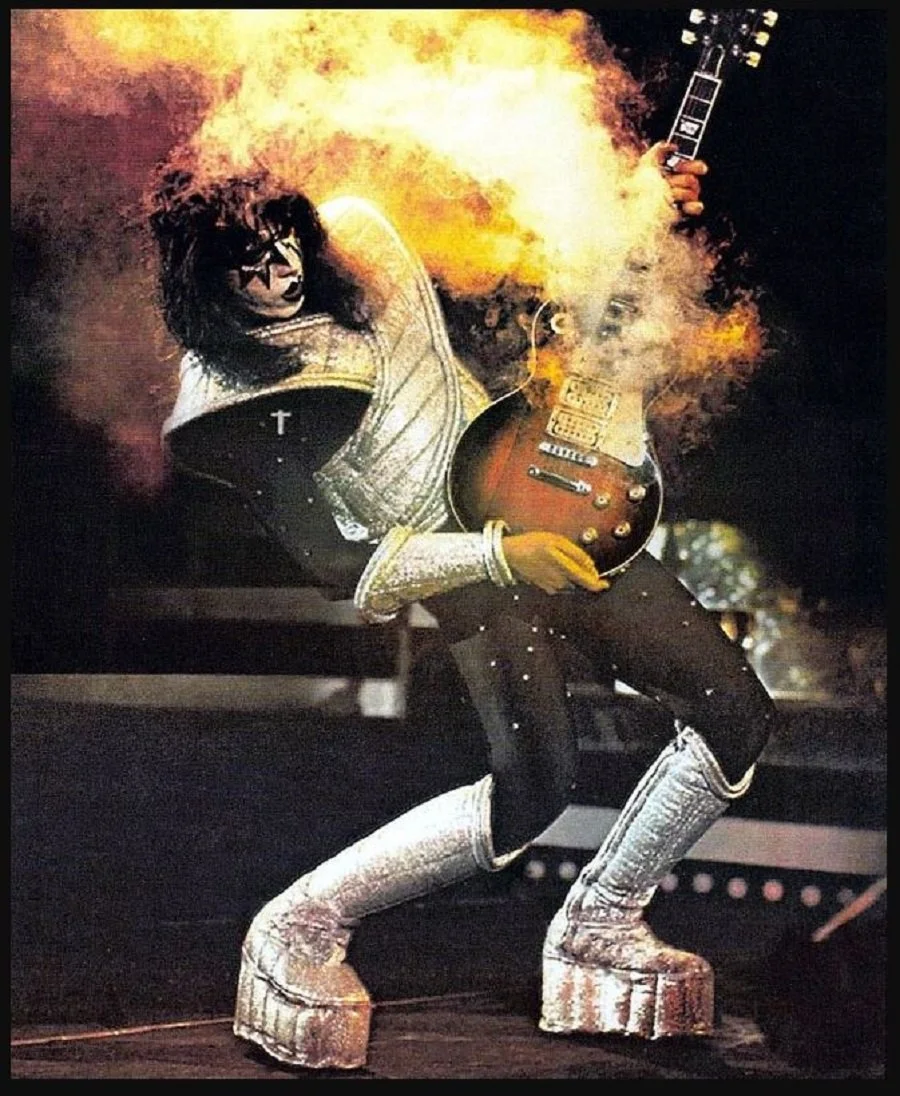 Onstage, Frehley’s playing and presence turned concerts into cosmic carnivals. His guitar would literally smoke during solos, and his tone — thick, melodic, and slightly unhinged — became as much a part of KISS’s identity as their makeup. Songs like “Shock Me,” “Cold Gin,” and “Rocket Ride” became instant fan favorites, capturing both his humor and his musical firepower.