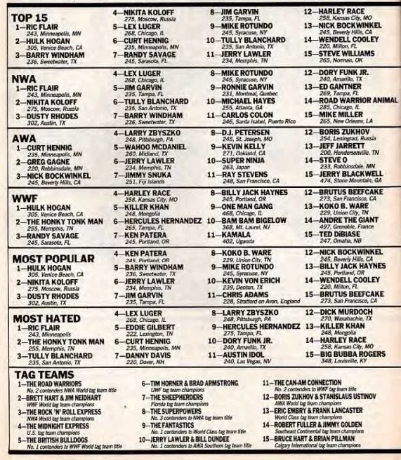 November 4, 1987 Pro WRestling Illustrated Magazine rankings