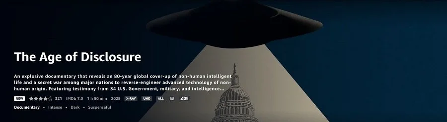 The Age of Disclosure is a new documentary currently in select theaters and streaming on Amazon Prime, examines a cultural moment defined by shifting norms around secrecy, science, and public accountability. Rather than sensationalism, the film adopts a restrained, almost clinical approach, arguing that governments worldwide may be preparing to acknowledge realities long relegated to speculation: the existence of non-human intelligence and the technologies associated with it… and makes a very compelling case.